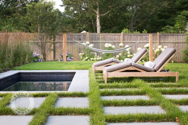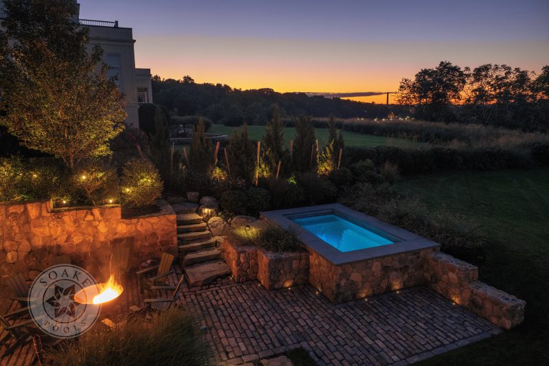 Additionally, you can customize the pool to match your design aesthetics. The interior can be outfitted with your tile of choice. Soake hand-tiles all their pools in their controlled environment in NH. For the exterior, choose from rock, slate, tile, or other materials so the pool seamlessly blends into your outdoor surroundings.