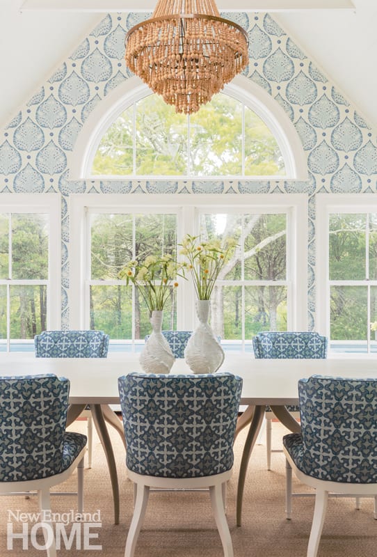 McAleer used a light—yet fearless—touch with the decorating. In the dining room, for example, she added considerable punch with Lotus wallpaper from Galbraith & Paul. While the oversize botanical pattern might have overwhelmed a smaller space, here it makes a spirited companion to the clean white walls and ceiling and the broad expanse of windows overlooking the backyard. In another bold move, McAleer introduced a second pattern, this one on a smaller scale and in a deeper shade of blue, in the fabric on the dining chairs. “When the chairs arrived, and we put them in the room with the wall-paper, it kind of took our breath away,” she says. “It’s just the right amount of pattern, and the colors are perfect together.”