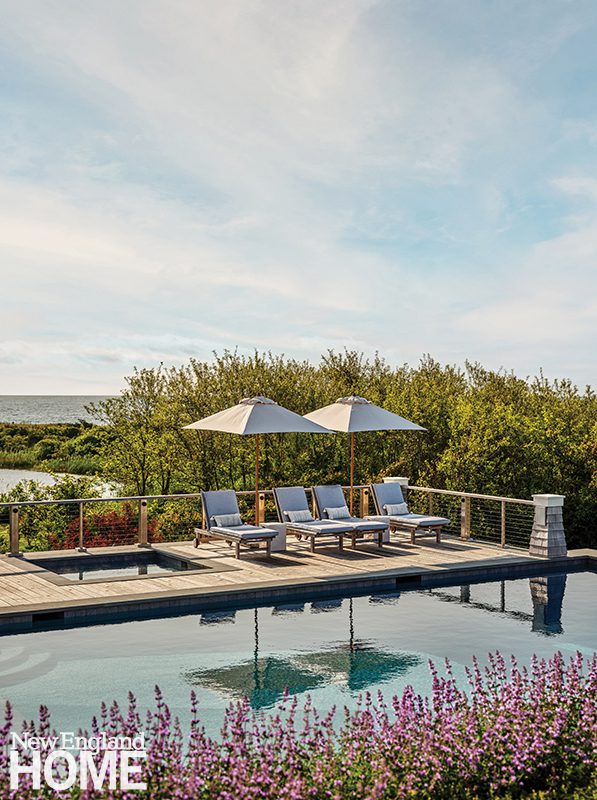 “They always wanted to have a sort of family compound,” acknowledges architect Arthur Hanlon whose firm, Shope Reno Wharton, tailored the 9,100-square-foot home for the couple, their son and daughter, and their respective partners. “Everybody really chimed in, which was challenging on one front, but great,” he says. “It was truly a joint effort.”