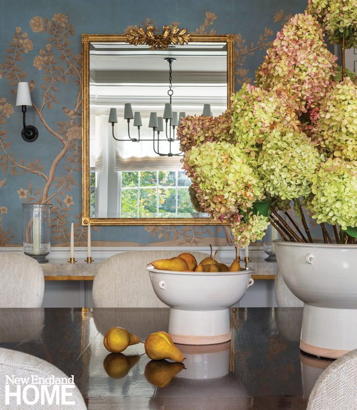 Throughout the home, Mellowes & Paladino employed their signature mix of traditional elements with contemporary features and clean lines. “We know what styles have lasted for hundreds of years, and we want to continue in that tradition,” says Coutu of the interior architecture. “It doesn’t feel stuffy or trendy. It just feels timeless.”