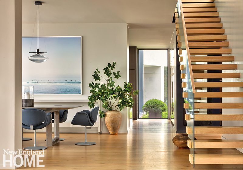 Parker’s clients, a family with three teenagers, asked him to show them two designs for their new residence, one traditional and one contemporary. For the latter, Parker, in a sense, gave Kensett the reins. “When I discovered the connection with Kensett, it changed the way I thought of the house and its relationship to the water,” says the 2021 New England Design Hall of Fame inductee.