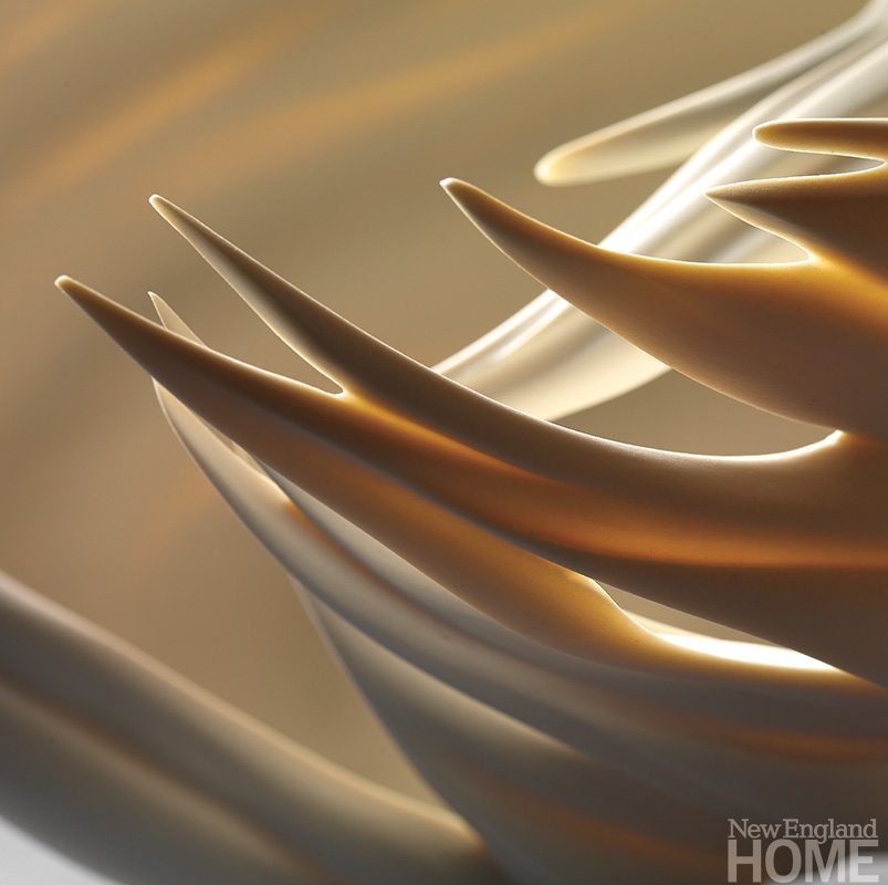 Museums and galleries around the country have made a place for McCurdy’s work. Her Wheat Bottle—inspired by the tip of an undulating stalk of wheat—is in the permanent collection of Washington, D.C.’s Smithsonian Renwick Gallery, and her Coral Nest—a bowl-shaped assemblage of nested oceanic appendages—sits at the American Museum of Ceramic Art in Pomona, California. Lately, she is developing new vessels she describes as, “more radical—with more curves and negative spaces.”