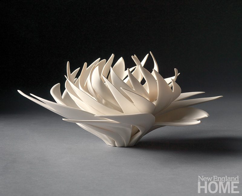 After manipulating porcelain for more than thirty years, the freshness of the artist’s pieces is still palpable as she hones her craft and develops new techniques almost daily. “I couldn’t do the work one year ago that I’m doing right now,” she says. “Anybody could spend three lifetimes in clay and never scratch the surface of it—but I know I’ve grown my skill with the completion of each piece.” •