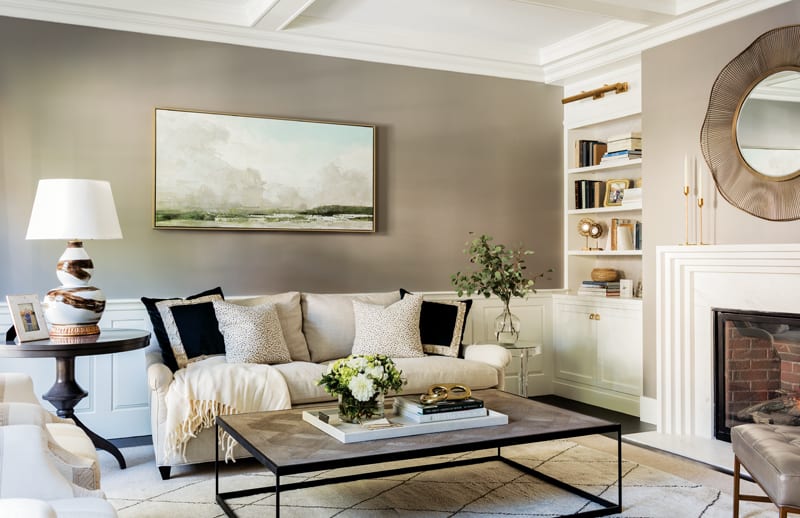 The couple were only the second owners of the home, which was built in 2009. It was a traditional, center-entrance colonial of about 8,600 square feet, planted in a neighborhood of young families—a wonderful place to raise their three children. The wife had followed Gates’s fashion and design blog, elementsofstyleblog.com, and called the Newton, Massachusetts-based designer within months of moving in to ask her help in personalizing the yet-unadorned house. “We worked on the house from top to bottom, except for one or two rooms,” Gates recalls. The kitchen, they decided at the time, was serviceable enough to be placed on the “do it later” list. So were the living room and the lower level.