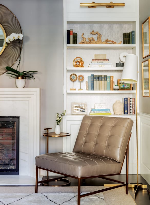 The water had spared some of the main-floor spaces, such as the dining room and most of the family room, but much of Gates’s work on the upstairs bedrooms and bathrooms would need to be redone. She met with restoration contractors Old Grove Partners to determine what would be salvaged, and what would be rebuilt. And they discovered that the new remodel presented a tantalizing opportunity to recreate things the way the couple would have designed them from the start. In rooms that needed minor repairs, paint colors and furnishings would be pushed closer to perfection. “They wanted to elevate it just a tiny bit more than they originally had,” Gates explains.