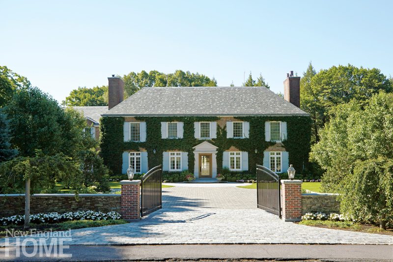 The scope of the eighteen-month project was significant, including carving out a new hallway from the foyer to the kitchen; raising the roofline of an existing garage three feet and converting it into a family room; building an addition to hold an oversize garage for Lew’s collection of Ferraris; and adding a new pool house for entertaining. The house’s original slate roof was also restored, and a brick parking area added in the front.
