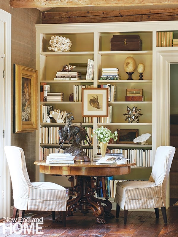 It may sound counterintuitive to talk about updating the decor in a house that’s meant to look old, but that’s exactly what interior designer Carol-Ann Speros was enlisted to do for the FitzPatricks, who are the home’s third owners. “The goal,” says Speros, “was to take it in a fresher direction while being respectful of the history.”