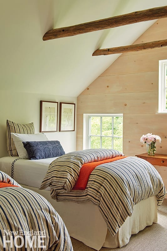 While that rural feel is a big part of what the FitzPatricks loved when they were house hunting, they were equally charmed by the neighborhood, an enclave of homes built by Skip Broom and his crew at HP Broom Housewright. Broom acquired the thirty-five-acre expanse of land in the late 1980s with the goal of saving about-to-be-razed eighteenth-century houses around New England. “We’d buy a house for very little money, disassemble it, save everything worth saving, transport the pieces back to the site, and use them to build a new house,” he says.