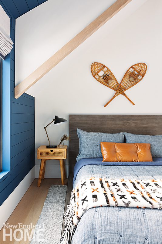 Broadwell and Kotchen collaborated on other features, like a bunk bed in a modest-sized room that the owners wanted to sleep six. Kotchen drew up a triple-decker design accommodating queen, full, and twin beds with storage drawers underneath. (An adjacent daybed accommodates the sixth sleeper.) Broadwell had to figure out how to unobtrusively fasten the bed to the walls and ceiling. “It was a lot of logistics going into a little space,” he says. The elaborate structure now rises almost to the sixteen-foot peak of the ceiling, its three levels connected by two ladders and a landing. Everyone fights over who gets the top.