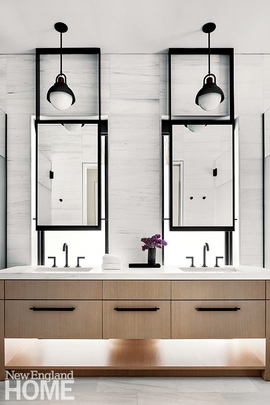 That day finally arrived, and the avid skier engaged Workshop/APD to make his project a reality. One half of a fortysomething couple with two children, his tastes skewed more traditional. But, explains Kotchen, “We strive to build houses with a modern point of view.” The solution was a clutch of pavilions “that had that presence but didn’t scream ‘I’m a cool modern house dropped into the Berkshires landscape.’ ”