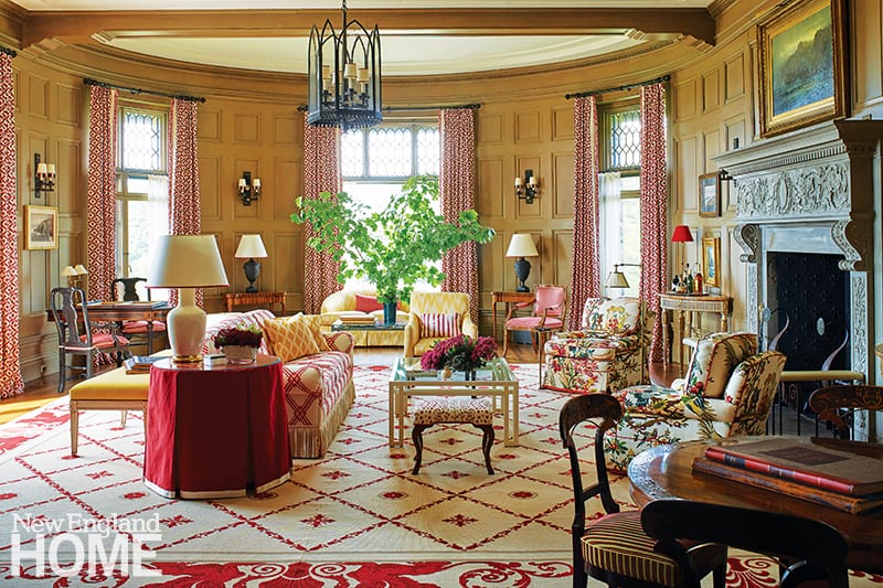 For the celebrated designer J. Randall Powers, the opportunity to decorate one of Newport’s iconic nineteenth-century summer cottages, lovingly referred to as Edgehill, was a thrill in itself. But the fact that the property came with such an architectural pedigree was the icing on the cake. After all, the notable residence was originally designed by the legendary McKim, Mead and White architectural firm (think Boston Public Library), and the park-like grounds were devised by Frederick Law Olmsted (of New York City’s Central Park fame). Decorative moldings and elaborate fireplaces, as well as perfectly placed windows to take in the surrounding vistas, afforded Powers a beautiful architectural envelope.