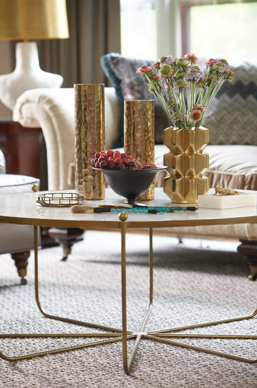 Snuggle-friendly velvet chairs and an oversize wool couch strewn with pillows call for settling in with a book, and there’s room for the whole family to gather to watch a movie or play games. Meanwhile no one is afraid to touch anything, Sandi says, especially the faux snakeskin leather ottoman, because the whole house is designed to be lived in. “It was made for holidays and entertaining.”