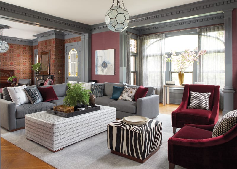 Built for John Hoyt Perry, a prominent judge, politician, businessman, and philanthropist at the turn of the twentieth century, the 6,000-square-foot home features numerous period details. The original architectural embellishments—from the intricate corbels and exposed beams to the inlaid parquet floors—were resuscitated with the help of daring new owners, Sandi and Chris Wright, and designer Rachel Reider. “It was important to the owners to respect and maintain that architectural history, but make it feel more like theirs,” Reider says. “Make it fresher, a place they could feel comfortable spending time as a family.”