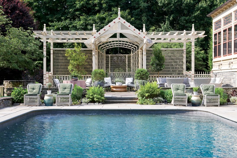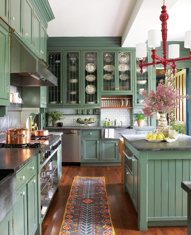 So they didn’t. Paint it white, that is. Nor did they gravitate toward the traditional out of guilty respect. Rather, it is contrast and geometric patterns that transform this Gilded Age beauty into a welcoming retreat and entertaining haven. And it all originated with that overlooked stained-glass window. “That was the starting point for the color palette on the whole first floor, with touches of teal and maroon dotted throughout,” says Reider.
