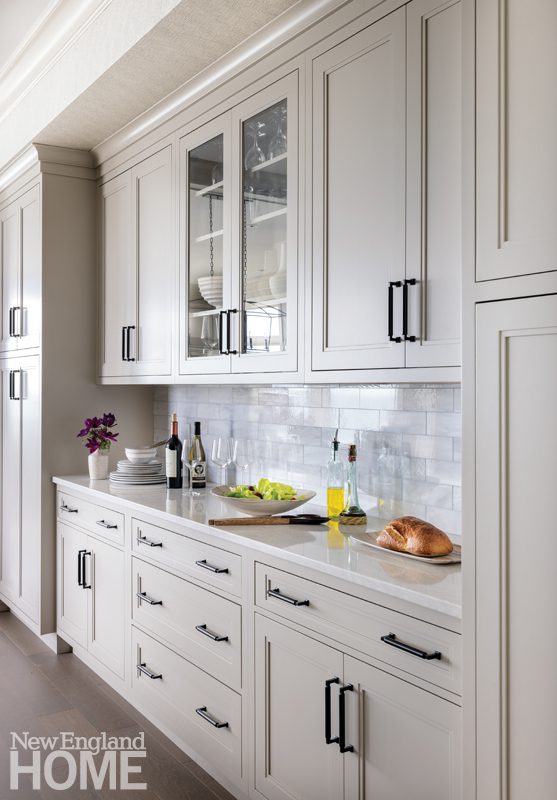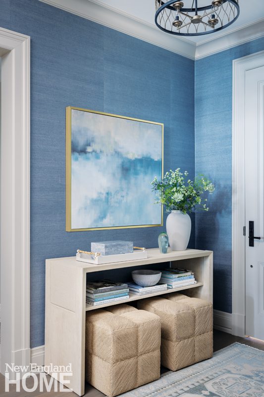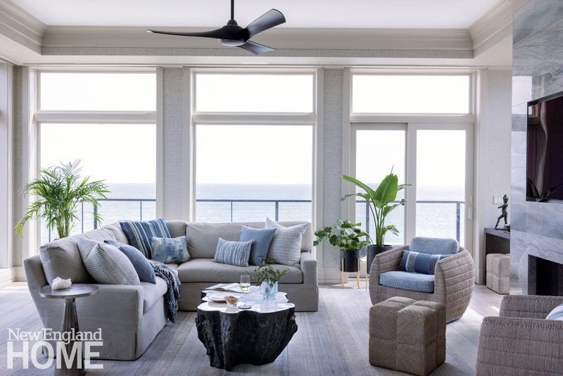 They didn’t have to look far. A new twenty-unit oceanside project in Swampscott, built on the grounds of President Calvin Coolidge’s former summer residence and the former Marian Court College campus, went on the market just when the couple began their search. They were among the development’s first buyers and purchased a 2,513-square-foot three-bedroom top-floor unit. “It ticked all our boxes,” says Bob. “It has an elevator—no stairs!—it’s spacious, and, best of all, the unobstructed ocean views are out of this world.” All they needed to make their dream a reality was an interior designer.