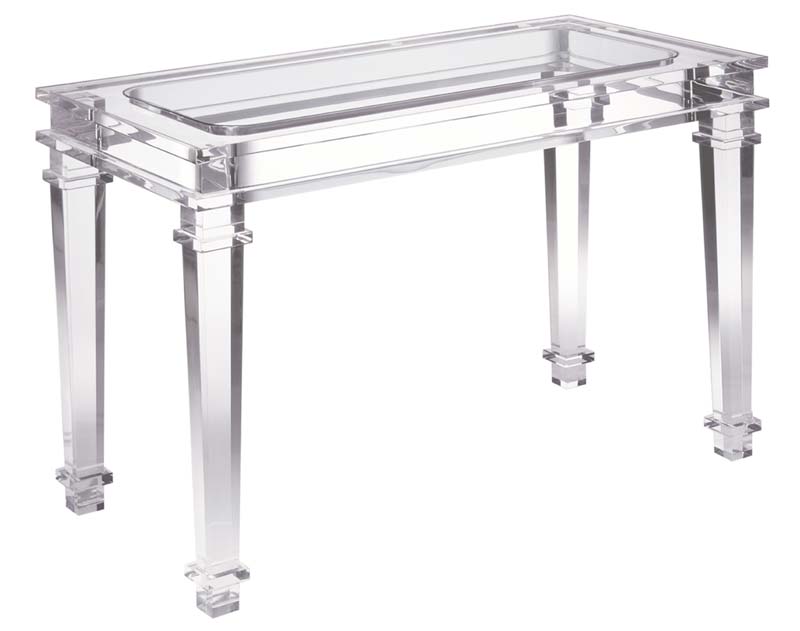 Floating on Air It’s a rare material that’s transparent and airy but still has presence. Lighter and more shatterproof than glass, acrylic furniture first gained popularity in the middle of the twentieth century; the current interest has been reignited by designers like Philippe Starck and Jonathan Adler. The Gdansk desk by Spectrum Limited comes in two sizes and can be custom-sized. 36” x 20” x 32”H, $10,350; 48” x 20” x 32”H, $11,250. D SCALE, BOSTON, (617) 426-1055, WWW.DSCALEMODERN.COM