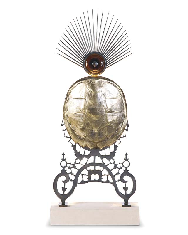 Behold the Turtle Cast from bronze, the Terrapin lamp, originally designed by Tony Duquette for a penthouse in Honolulu, is topped with an outrageous finial that sports a Murano glass center. Backlit by a single 40-watt bulb, the shell is supported by an intricate laser-cut column. 9½”W x 6”D x 24”H. $11,880. BAKER FURNITURE, BOSTON DESIGN CENTER, (617) 439-4876, WWW.BAKERFURNITURE.COM