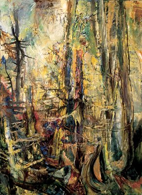 The landscape around his house is gentle compared with his most famous series of landscape drawings and paintings, those he made in the 1950s and ’60s, based on the woods in the coastal town of Lubec, Maine. He turns these scenes into fairy-tale forests where anthropomorphic trees, their branches pirouetting wildly from their trunks, look ready to capture anyone who dares enter their midst. “All they are is fantasies,” the artist says. “I was trained to work from the imagination. I’d view something closely and then go back to the studio. I start with a plan, but it never works out precisely. You discover as you work. That’s where the fun is.”
