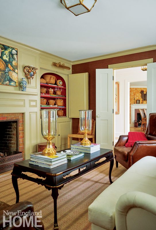 As for the interiors, Mahon’s faultless curation of old and not-so-old furnishings, lush colors, and patterned textiles is perfectly suited for this meeting of the centuries. “I really do love pattern play,” she says. “If you get it right, it makes rooms more interesting.” And though her antiques inventory tends to Americana and Folk Art, her design style is historically eclectic. “If you mix what you love, you find a way to make it work,” she says.
