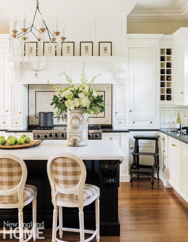 “I love entertaining and cooking,” Whalen declares. Still, twenty years ago when the couple and their two young children moved in, there was no time for a major kitchen overhaul. Instead, the owners did a cosmetic fix and concentrated on more pressing issues, like modernizing the systems and repairing the slate roof.