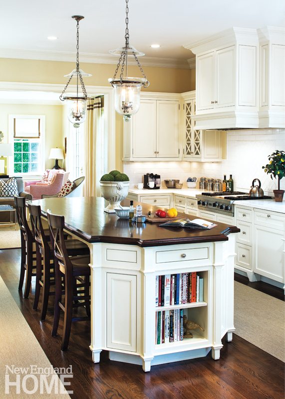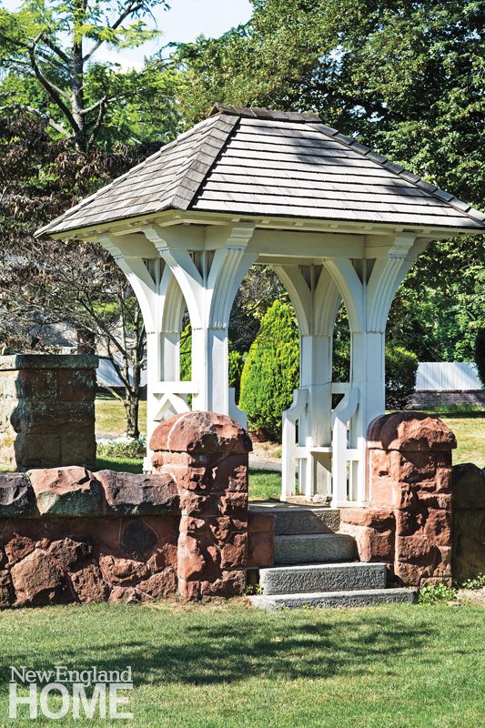 Wadia drew up plans for a white clapboard Colonial Revival house with a Dutch gable roof with a series of dormers to add a sense of grandeur. The aim was a house that would fit seamlessly with the more traditional aesthetic of the neighborhood, but that would also have a modern feel suitable for a young family. Preserving the beautiful sandstone walls that border the house lent a welcome sense of history to the landscape.