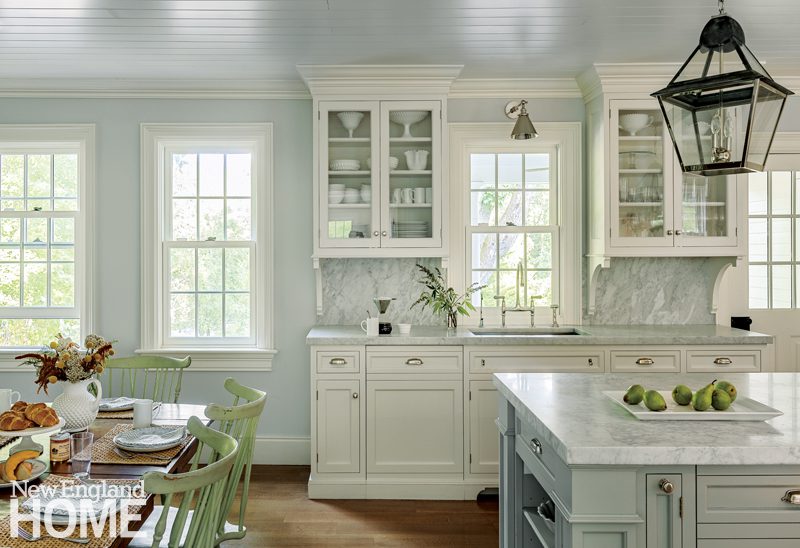 The scope of the project grew to include upgrades, replacements, and repairs, says Crisp. “Our goal was to blend old and new with a floor plan and materials that respected the house’s history but worked for a young family in the twenty-first century,” he says. Not surprisingly, headaches arose—like beams in unexpected places—that had to be remedied, says builder Joe Pisoni. “The most harrowing construction challenge was having to blast and displace so much rock to make room for the garage,” he recalls. They repurposed much of it to build “new” stone walls on the property.
