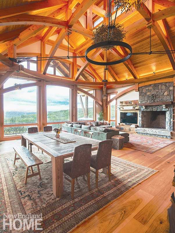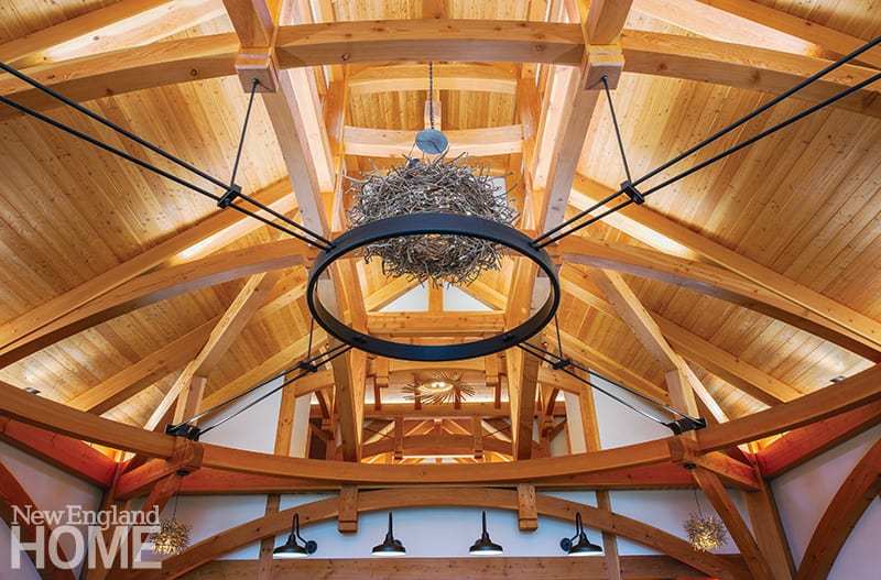 Some people stare up to the night sky for other-worldly inspiration. Shannon Young derives the same pleasure simply by contemplating the ceiling in the great room of his Bridgewater house. “I spend a couple of hours a week gazing into this,” he says. “I literally find a new discovery in it every night. The joinery is just so amazing, so perfect, so tight. I get lost in it.”