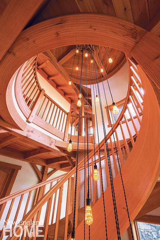 The original idea came to Young when he visited the historic Tabernacle on Martha’s Vineyard; his vision was solidified by a trip to the New Energy Works facility in Farmington, New York. A commercial builder himself, his sights were set on a timber-frame design. “I like to see the function shown—the bones of a building,” he admits. “The function becomes the fashion.” When Young spied the curved beams, he had a thought: “I wanted to see how far we could push this concept of a non-traditional shape: a perfect circle made out of wood in an incredible size.”