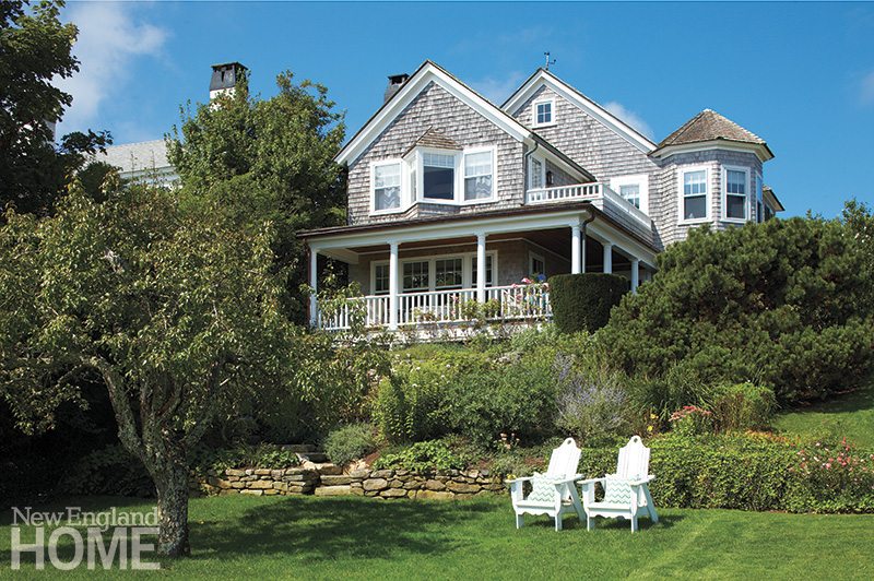 Oriented to the east and sitting above Edgartown Harbor, the house catches the first light of dawn as it spreads across the water and over the stiff masts of bobbing sailboats. Perched high enough to command a view of Chappaquiddick Island and a spit of beach where boats seem to move in a constant waltz of activity, it is the opposite of looking at an endless horizon of uninterrupted water. “The harbor is just so much more entertaining,” says Hilary. “From our deck we can see friends at their house on Chappy watching the sunset at the end of the day. We can give a little wave.”