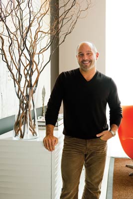 Cappoli bought the two-bedroom, two-and-a-half bath space at a time when he was commuting between Los Angeles and Boston, working on residential and commercial projects for Hollywood heavy-hitters writer/director Alexander Payne and producer Michael London (both of Sideways fame). “L.A. was a huge influence on me,” the designer says. “It’s all about mixing styles there. As long as things are appropriate in scale and color they can work together. I’ve been noting that, since I was working in L.A., I love bringing contemporary fabric or art into traditional spaces or mixing them into transitional spaces. It’s an element of surprise.”