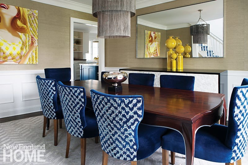 The other thing the firm brought: art. De Maria and Yanni both collect fine art, and De Maria was an art history major. (Yanni started her career as a producer for Food Network.) When art consultant Lisa Cooper, owner of Elisa Contemporary Art, showed the designers Gold Rush by James Rieck, which Cooper had discovered at Lyons Wier Gallery in New York City, the pair knew the painting was destined for their Fairfield project. “It’s our client,” says De Maria. “It’s her blond hair; it’s how she would have dressed and worn her hair in the ’50s. I knew that by hanging it in the dining room, guests would talk about that art the entire dinner party.”