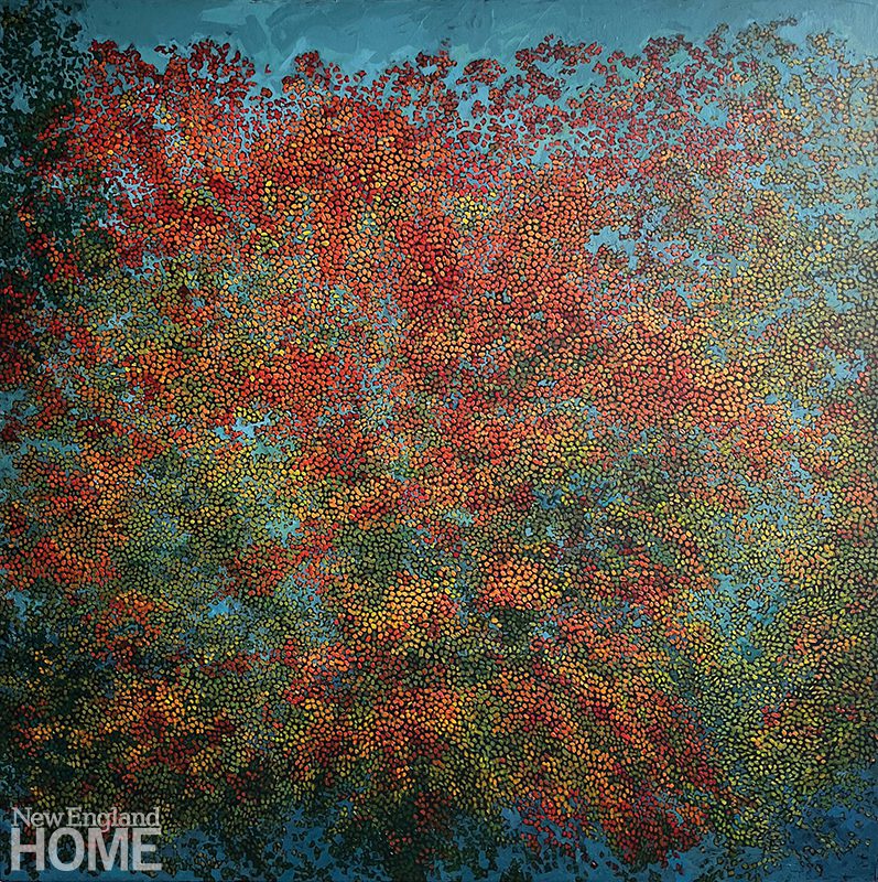 When cold temperatures took hold, Noël moved back to Boston, found a new studio, and expanded those sketches into a masterwork she named Northern Kingdom, in homage to Glover. Black gesso, acrylic paints, and chalk pastels allowed her to create a representation not of reality but of a world that looked magical to her, one filled with clashing perspectives and pointillist vibrations. It was the foundation for most of her subsequent work.