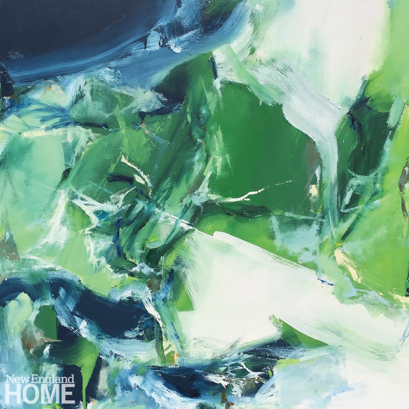 “Water is a big part of my work,” says Dubicki, and while her abstract paintings don’t usually reference a specific place or scene, nearby Morris Cove informs her frequent preference for working in shades of blue and green. “I just take it all in, whatever the atmosphere is, and hopefully a painting happens at some point.”