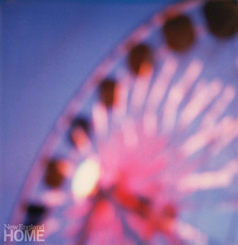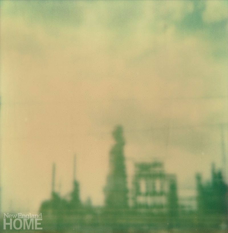 These tools are, first and foremost, Mikula’s collection of vintage Polaroid cameras and film. The unpredictable nature of each camera, as well as the volatility of expired film, is central to her method. Mikula takes notes about each of her cameras before selecting a model for a specific project; she takes the same care in choosing her film. Until recently, she used only natural light, and she never manipulates the image after taking the shot. The Polaroid print is then scanned and reproduced, with astonishing results. The pinhole camera and rare Polaroid Chocolate film used in bearings #1 captures, in moody abstraction, the experience of being on a fishing boat off Cape Cod. In Civil Twilight, Santa Monica, CA #1, a Ferris wheel becomes a half-circle of refracted light, swirling through our collective memories of such a place and time.