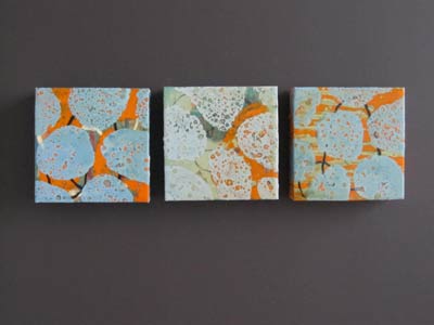 âThese two pieces hang above my bed in the master bedroom. They create harmony and continue the apartmentâs color scheme. I love the use of texture and color in the pieces and they go great with the big green ginger jar lamps on the nightstands.â