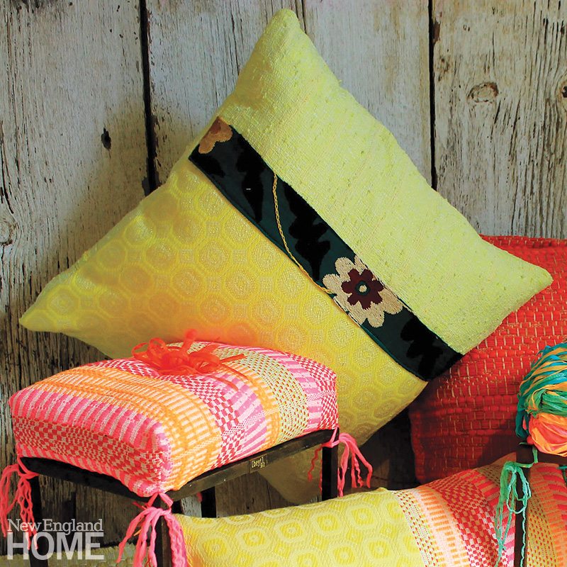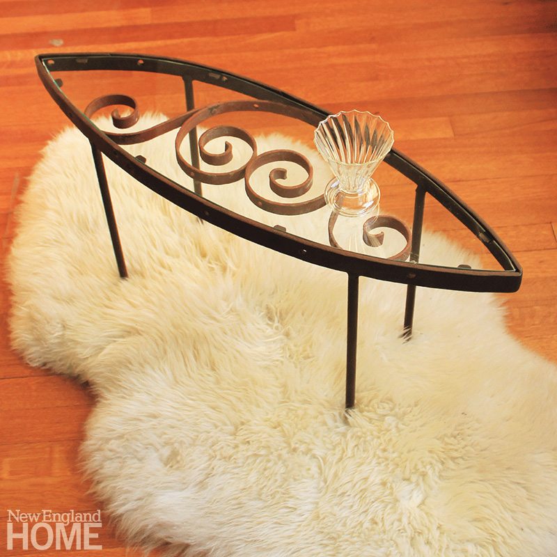 In the back room of Beyt, a shop on Mount Auburn Street in Cambridge, Massachusetts, Lorraine Carrington stitches together the edges of an ovoid tweed lampshade. She carefully lines up the weave of chunky gray-and-fuchsia wool. Reminiscent of a Chanel suit, the fabric is a remnant from the French supplier of the famous tweeds. It will crown a curvaceous wrought-iron base that was once part of a building in Beirut, Lebanon.