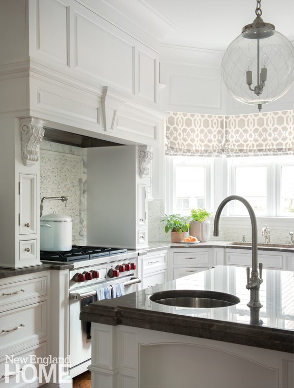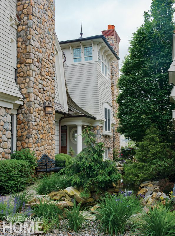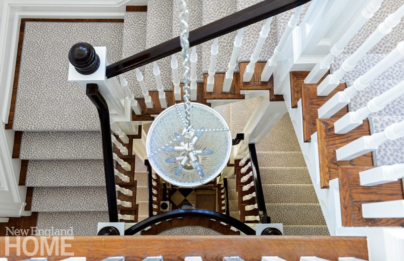 From the start, Arredondo was impressed with the downtown development’s traditional Shingle-style exterior and interior details that included classical moldings and coffered ceilings. The cluster of eight homes had been built in 2007 by Belray (now Belpointe) of Greenwich and designed by Westport architect Anthony J. Tartaglia. In his design, Tartaglia incorporated many of the graceful details of the early twentieth-century Shingle-style homes that once occupied the site. In addition to stone chimneys and bracketed eaves, each townhouse has an imposing four-story stair tower. “I wanted to create something as impactful to the street as those old houses were,” he says.