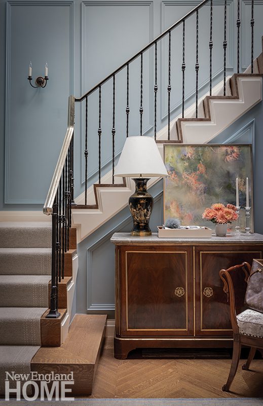 It all started out innocently enough. The wife of a couple who had purchased a recently developed early-1800s condo in Boston’s Beacon Hill was staying at the Inn at Hastings Park in Lexington, Massachusetts. Counter stools around the bar caught her eye, so she called the hotel’s interior designer, Robin Gannon. “We got to talking,” says Gannon, “and before we knew it, we were designing the whole space.”
