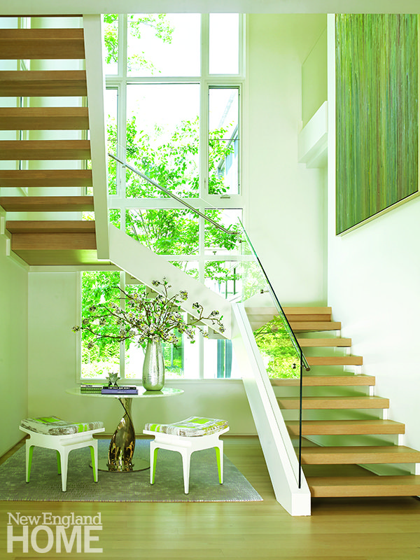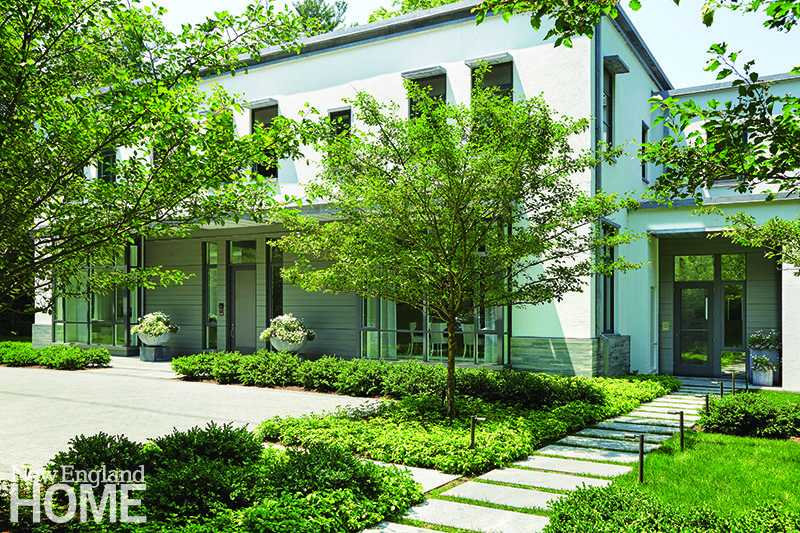 Martell knew her clients—a husband and wife with four teenagers—well. She had aided in a renovation of their previous home, and worked with other members of their family. By contrast, the couple engaged architect David Stern through a formal process, soliciting proposals and interviewing several architects before making their choice. Working in New England, Stern had designed his share of traditional homes. But his real passion is for contemporary design, which is exactly what these clients desired. “They definitely wanted a modern house,” Stern says, “and they had a pretty good vision of the types of spaces they wanted.”