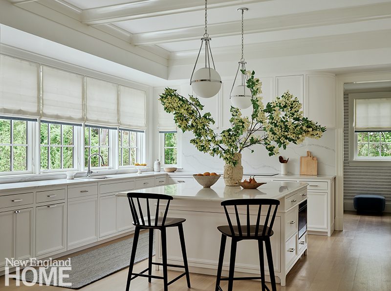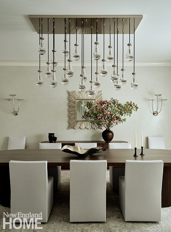 “The clients wanted to downsize to something that’s cozy for two but will accommodate their four children and thirteen grandchildren on holidays,” explains Burr. Despite downsizing, though, “they didn’t want to give up a sense of presence and grandeur.”
