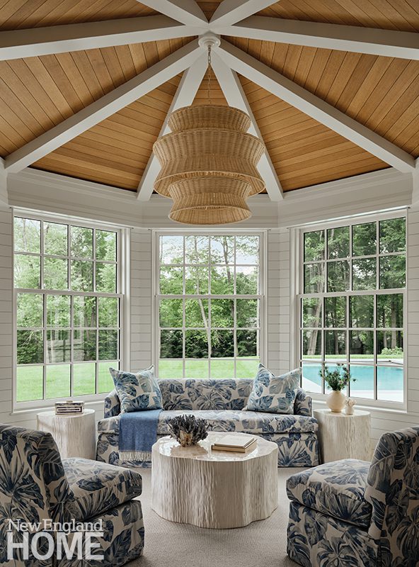 Inside the 4,700-square-foot home, all the necessities—including the primary suite—are located on the first floor. In addition to the soaring family room, kitchen, and dining room, there’s also an office, a sunroom, and a screened porch. The second floor houses two guest bedrooms and a playroom for the couple’s grandchildren.