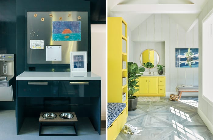 Two mudrooms balance form and function with bold design moves and clever storage ideas.
