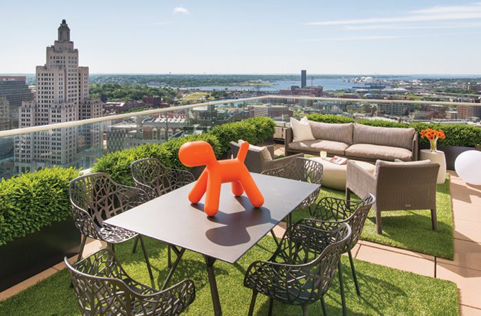 A grand building built of glass and granite and featuring a mix of luxe hotel suites and condos (not to mention a slew of upscale amenities and several acclaimed