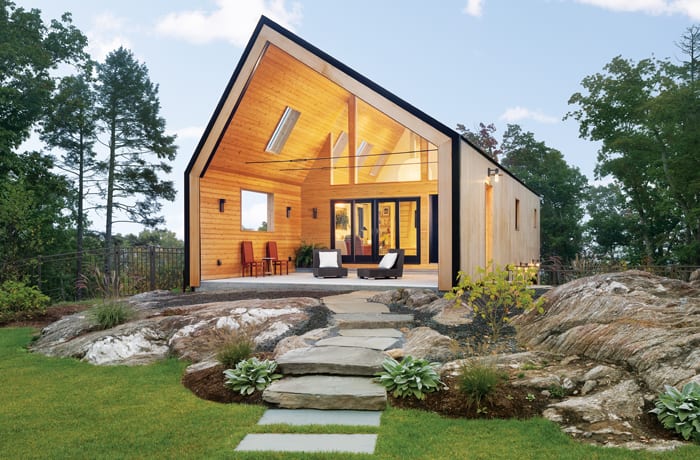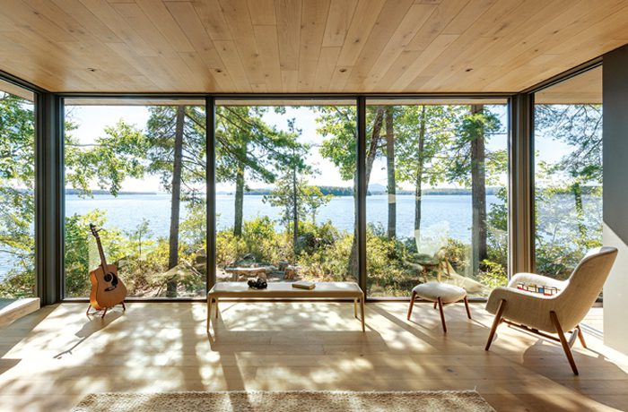 A vintage waterfront lodge becomes a sophisticated year-round residence that pays homage to its rustic origins.