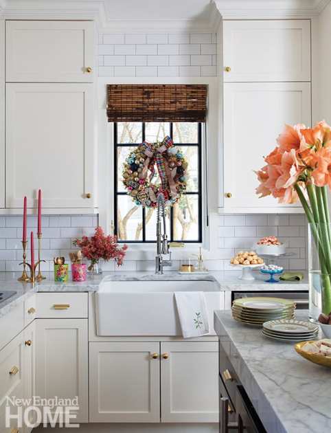 While creating magic for clients of Les Fleurs—Sandra Sigman’s Andover, Massachusetts, destination flower shop—she weaves extra eucalyptus wreaths and orders additional myrtle topiaries for her own family fête. Sigman lures in the forty family members who attend her annual Christmas Eve party with the commingled scents of lit candles and freshly snipped greens. She always leaves her own decorations for last. “And I secretly look forward to that,” she admits.