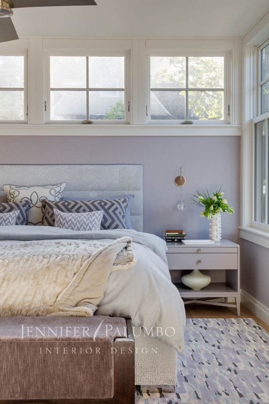 “I usually start with a primary decorative fixture––or the one we want you to see when you walk into a space. Then, we’ll either support it with recessed lighting to get the right amount of light, or we’ll use secondary and tertiary lighting like sconces and table lamps placed at a different level than the hanging fixture is,” Palumbo says.