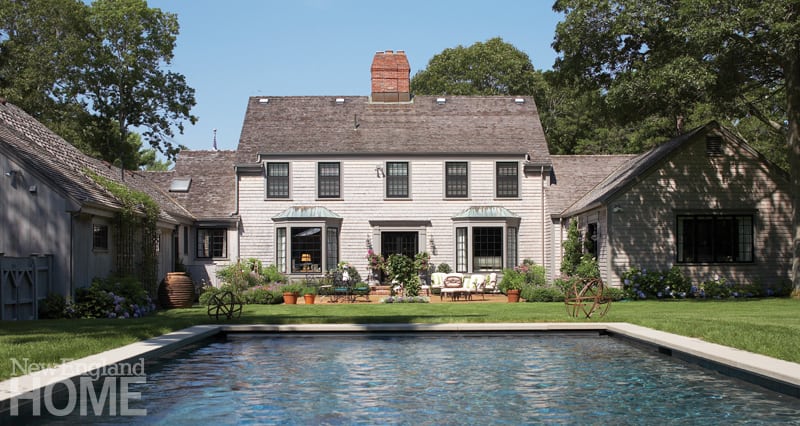 This Osterville, Massachusetts, house, with its symmetrical dormers, pitched roof, and handsome central chimney (all father and son signatures), was designed by Richard Wills back in 1986. By the time the current owners arrived, despite the home’s irresistible charm, a twenty-first-century update was needed. Having successfully renovated numerous homes in the past, the couple had more than enough experience. “We’ve also done houses in Florida, Cape Cod, and New Hampshire; probably all together almost a hundred,” says the husband, who deals in high-end real estate.