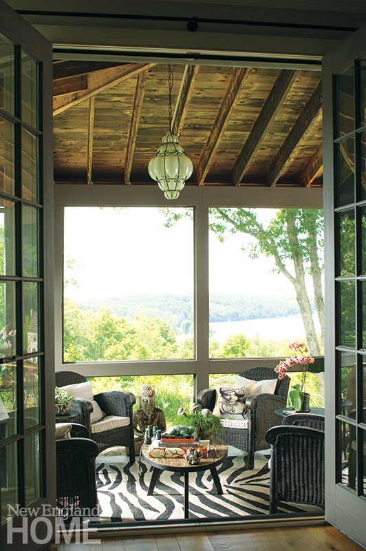 Two guest rooms on the home’s second level also have screened porches for flower- and water-gazing, thanks to the owners’ input and to Woerner’s channeling of fond childhood memories during the design process. “I recalled this great cabin with a porch and a swing,” he says, thinking back to summers spent at this very lake. “I’d sit and watch the weather move across the water.”