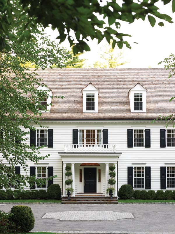 Situated on fourteen acres in the backcountry of Greenwich, this classic center-hall colonial epitomizes just such a sense of transition. While traditional architectural elements provide a framework for the home, the interiors have been given a fresh, contemporary design by Linda Ruderman-Rosier, of Greenwich-based Linda Ruderman Interiors. “The clients’ goal for their home was to have a comfortable living space that was functional for their young family, with a sophisticated design aesthetic,” Ruderman-Rosier says. Frequent travelers and avid art collectors, her clients wanted to be “surrounded by peacefulness and comfort” when they returned home.
