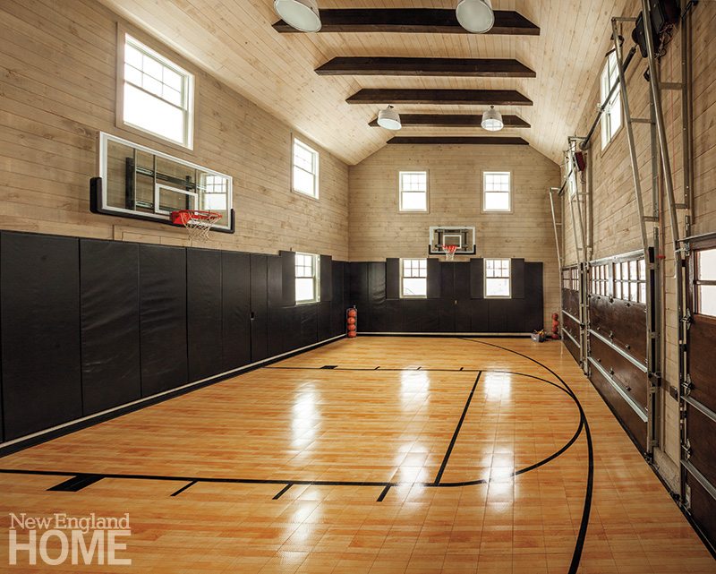 Upstairs, off the well-organized mudroom, is an indoor basketball court that doubles as a three-car garage.